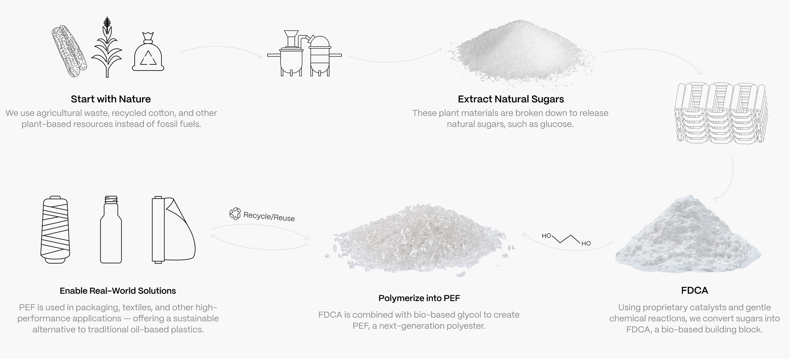 At Leaf Bio, we turn plants into polymers — starting from renewable agricultural waste and recycled cotton, and transforming them into advanced, fossil-free materials through cutting-edge green chemistry.